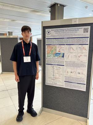 2025年戈尔德斯密特会议(Goldschmidt 2025 Conference)于2025年7月5日-7月11日在捷克布拉格国际会议中心召开。本会议是由国际地球化学学会(Geochemical Society)和欧洲地球化学协会(EAG)联合主办,是地球化学领域规模最大的年度国际学术盛会。会议主题涉及行星地质学、地球内部的化学与动力学、岩石圈过程和演化、火山活动-岩浆系统和危害、地球资源与能源、分析和计算技术的前沿及生命与地球的共同进化等多个学科,共设14个主题,超过100个专题。“幔游”课题组的刘建强副教授,王小均副教授和成倚山博士生参加了本次会议,其中刘建强副教授和王小均副教授作了口头报告,成倚山博士生作了壁报展讲。 7月7日下午,成倚山博士生在4a-P1专题上做了题为“Barium Isotope Fingerprint for Recycled Ancient Sediment in the Source of EM1-Type Continental Basalts”的海报展览,展示了运用Ba同位素探讨EM1型大陆玄武岩与源区再循环古老沉积物成因联系的工作(图1)。