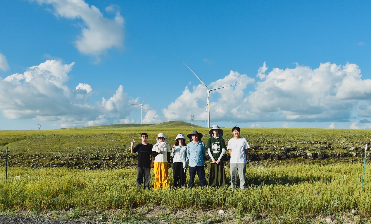 考察团队在阿巴嘎旗919县道边合影 (从左到右依次为严鑫鑫、刘萍、王寒默、王小均、牛宸、孙旭腾)